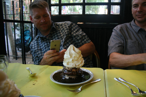 Ate dinner at a restaurant called L’Entrecote. It wasn’t attracting more or less attention than the other restaurants in the vicinity, but we thought it was fantastic. Beautiful building. Walnut Salad. Incredible, thinly sliced beef main course. A desert to die for, ice cream with meringue.
